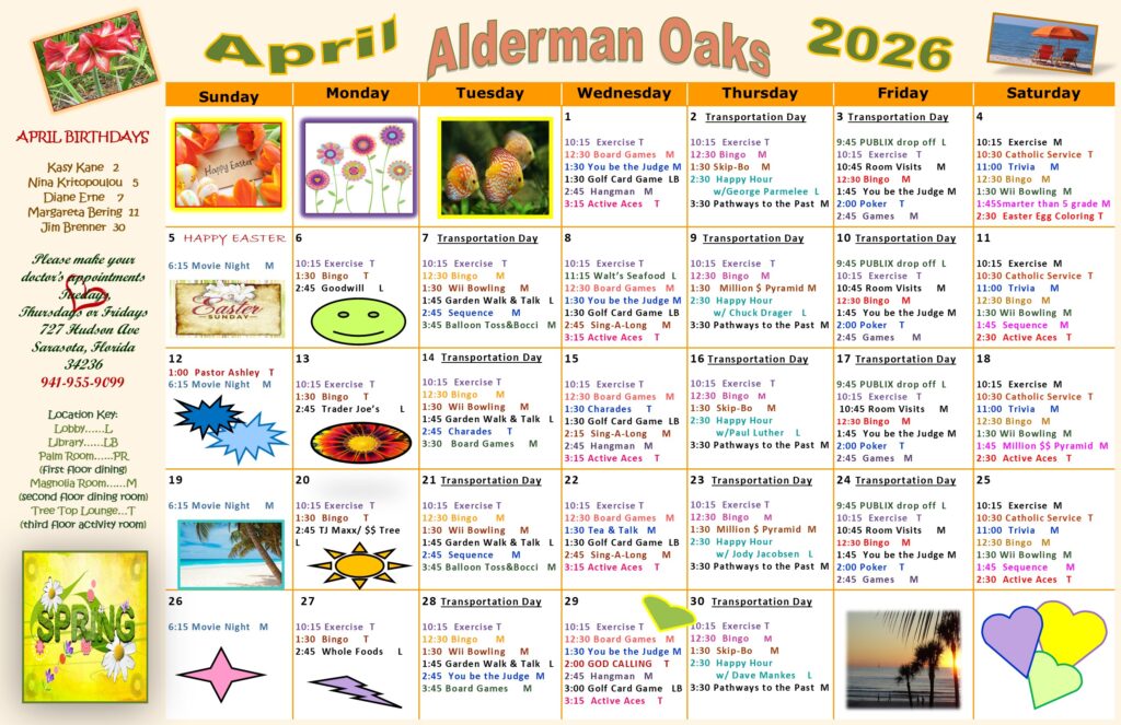 Alderman Oaks Monthly Activities Calendar