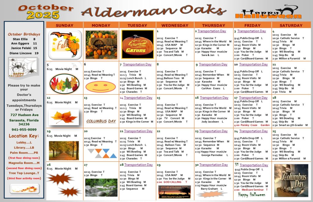 Alderman Oaks Monthly Activities Calendar
